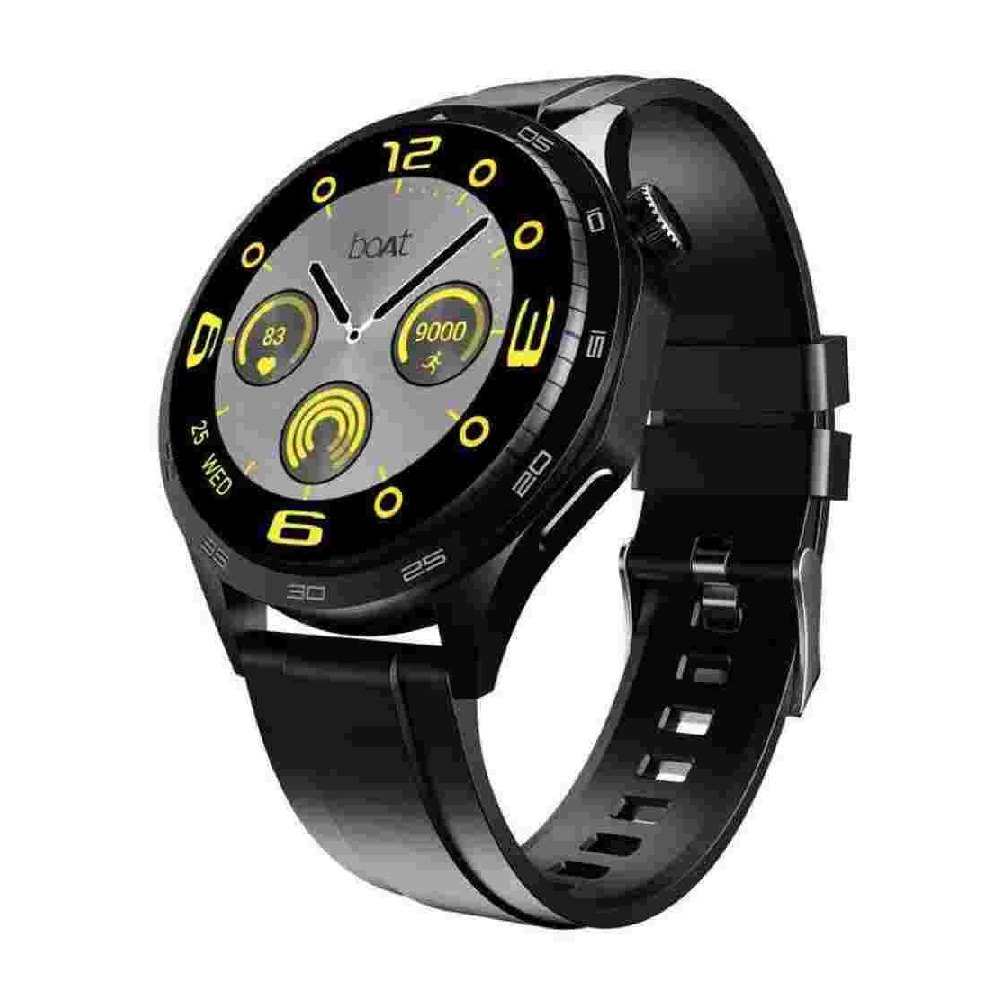 boAt Enigma Radiant Men's Luxury Watch w/Functional Crown,Bluetooth Calling, Upto 6 Days Battery, Sports Modes, Guided Breathing, 1.43"(3.63 cm) AMOLED Display Fitness Smart Watch (Active Black)